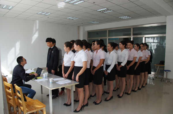 招聘会上,通过标准化招聘流程,面试官对bat365官网登录入口2014级100多名应聘学生的专业素质进行了全面考核。此次招聘分为形象初选、综合面谈等环节,初选阶段通过面试者自我介绍、站姿、走姿、身高测量等多个环节考核,由面试官根据标准进行综合评判。