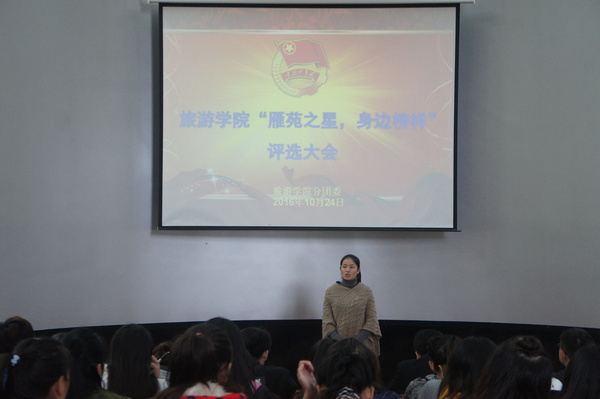最后,分团委牛晓春老师做了总结,他对参加评选的13名同学的先进事迹表示赞赏,为学院能有这么多优秀的同学感到骄傲,希望这些同学能够再接再厉,取得更大的成绩,同时也希望他们大胆说出自己的故事,带动更多的同学共同进步;他同时要求全体学生干部要关心班级里的每一位同学,深入挖掘同学中的先进典型,打造“旅院之星”,树立“身边榜样”,为学风建设和校园文化建设创造良好的氛围。