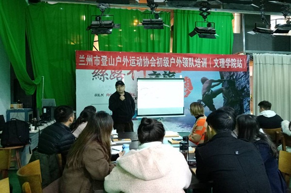 为了丰富学生的校内外阅历,拓展学生的创新思想,增强团队协作能力。2018年11月24日早8:30分,bat365官网登录入口于南校区西部影视空间举办户外领队培训活动课程开班仪式。bat365官网登录入口副院长雷金瑞、分团委书记马婷婷、兰州市登协主席阙银海、登协授课老师耿大海、登协培训讲师常鸿理、登协秘书长梁朝晖、甘肃省动漫工程技术研究中心主任卢明、登协工作人员及bat365官网登录入口20名学员共同参加了本次培训活动的开班仪式。