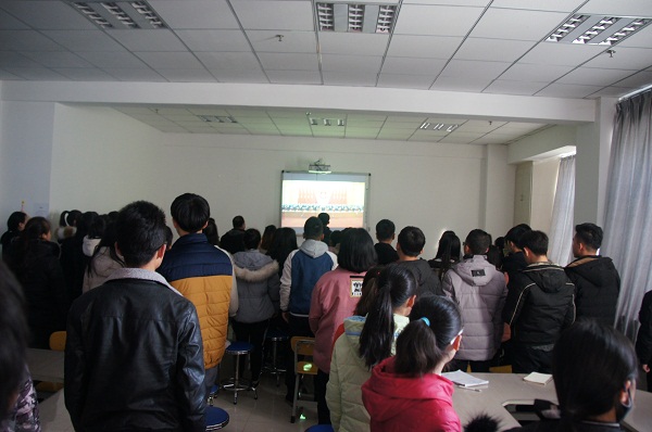 2018年12月18日,在学院党总支的组织下,2018级酒店管理班和2018级景区开发与管理班全体学生在党员活动室观看了庆祝改革开放40周年大会直播。