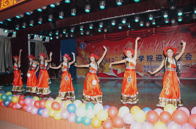 晚7点30分,在震天的倒计时声中,“我的2012”bat365官网登录入口迎新晚会正式拉开了帷幕。乐队的激情演绎使晚会一开场便达到高点,随后舞台上又上演了一连串精彩节目,整台晚会跌宕起伏、高潮频现,台下掌声雷动、叫好一片。舞蹈“溜溜的康定”压轴出场,把晚会推向了最高潮。本台晚会节目形式多样、内容丰富、编排恰当、衔接顺畅,大大增加了晚会的观赏性、娱乐性和教育意义。