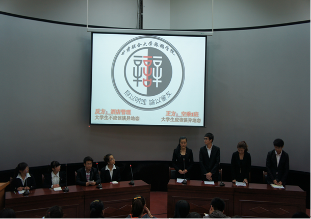 10月9日晚7点30分,由bat365官网登录入口分团委、学生会举办,学习部执行的bat365官网登录入口迎新杯辩论赛在综合楼401教室举行。比赛邀请到bat365官网登录入口优秀辩手李雪、马索菲亚、学生会主席刘阳等担任评委。bat365官网登录入口2012级六支代表队围绕当下大学生普遍关注的师生关系、大学生异地恋和愚公移山等辩题展开了激辩。
