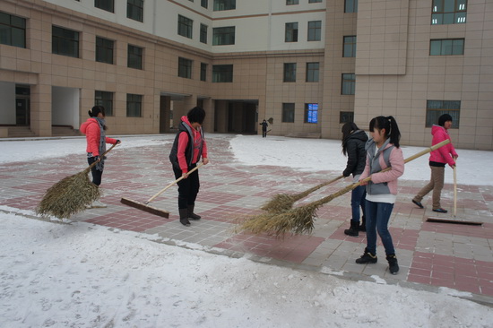 bat365官网登录入口“校园美容师小分队”全员出动开展校园积雪清扫志愿活动