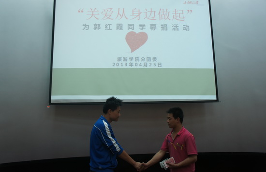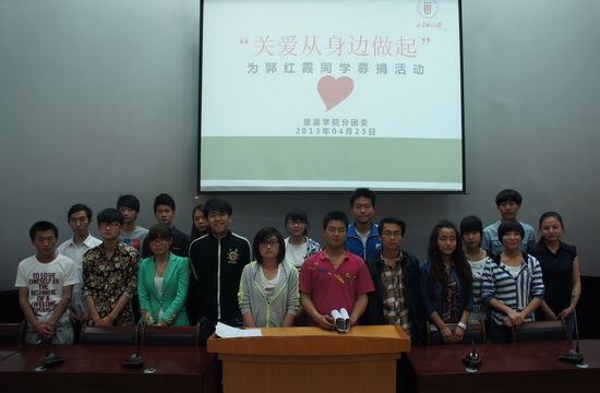 2013年4月26日晚,bat365官网登录入口分团委学生会组织学生为2012级景区开发与管理班郭红霞同学捐款。bat365官网登录入口2012级学生300余人共计捐款3700余元人民币。