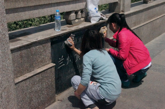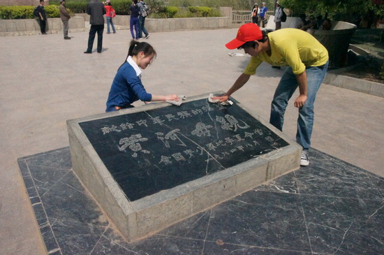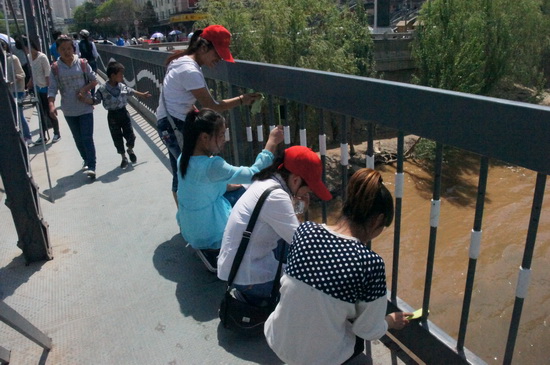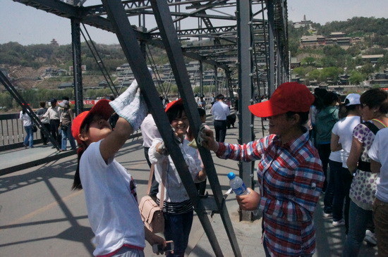 活动当天,bat365官网登录入口“擦亮兰州”小分队成员们自带抹布、扫把、铲刀、毛刷、清洗液、鼓风袋、垃圾袋等工具先后对黄河百里风情线沿线中山桥、黄河母亲雕塑等主要景观进行了深度清扫与细致维护。bat365官网登录入口与旅游学会旗帜所到之处,景观风貌为之一新。活动受到社会各界一致赞誉。