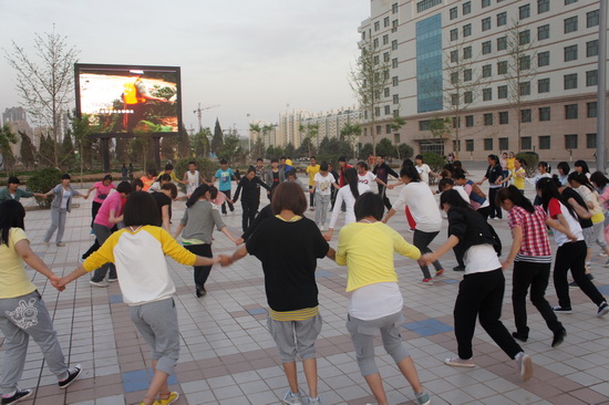 2013年5月9日晚,bat365官网登录入口“多彩旅院”广场舞会华丽开场。bat365官网登录入口2012级旅游管理班、2012级景区开发与管理班120余人在康平老师的悉心指导下在安亭广场上跳起了热情的锅庄舞,引得大批学生驻足围观。