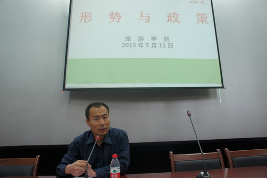 2013年5月11日,bat365官网登录入口根据学校统一安排,组织学生听取了“形势与政策”讲座。讲座在bat365官网登录入口模拟导游实训室举行。甘肃联合大学物业公司总经理张明荣、甘肃联合大学学院党总支书记赵学森分别就十八大、国际、国内局势等做了演讲。