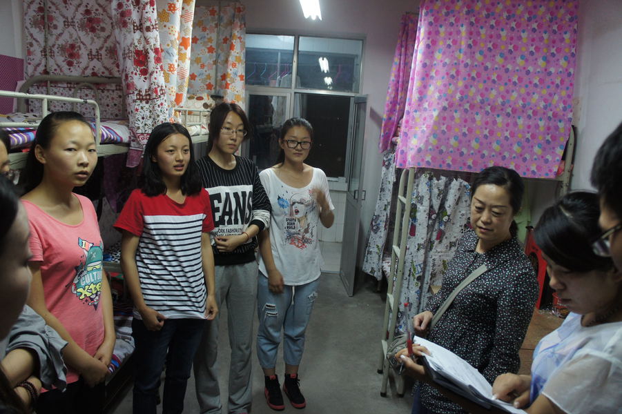 李书记详细询问了各个宿舍学生的报到注册情况及人员去向,强调了安全注意事项,希望大家互相关照,尽快融入大学生活。辅导员岳芳老师逐一核对了住宿学生信息。