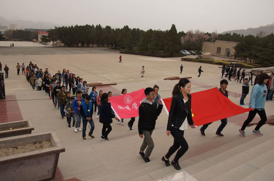 早上8:30,同学们在北校区门口集合后整装出发。节日期间人多车多,经过近两个小时的车程,终于到达华林山兰州市烈士陵园。同学们手捧白花,排着整齐的队伍站在革命烈士纪念碑前,仰望高耸的纪念碑,神情肃穆。仪式开始,广场上奏响威武雄壮的《义勇军进行曲》,同学们向纪念碑敬献了花圈及花篮。我院14级酒店管理专业孙千茹同学作为学生代表站在纪念碑下发表了慷慨激昂的演讲。全体同学与同时参加仪式的西北师范大学及兰州石化职业技术学院的同学们一同重温了入党誓词。最后,大家列队缓步走上台阶,瞻仰人民英雄纪念碑并敬献了白花。