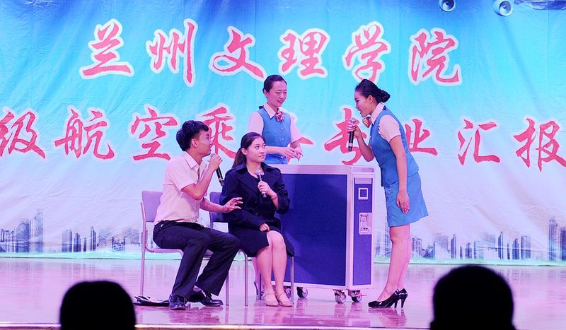 2015年7月3日晚,bat365官网登录入口在思源楼萃文厅隆重举办2013级航空乘务专业汇报演出。bat365官网登录入口全体师生、东方领航教育集团兰州文理学院项目部负责人及部分空乘专业学生家长共300多人观看了演出。