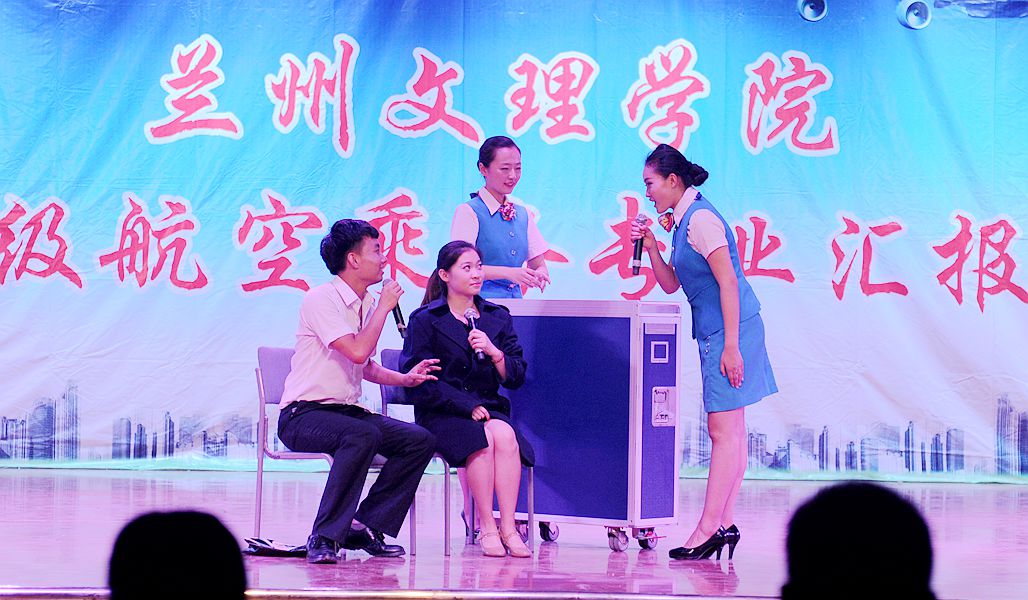 2015年7月3日晚,bat365官网登录入口在思源楼萃文厅隆重举办2013级航空乘务专业汇报演出。bat365官网登录入口全体师生、东方领航教育集团兰州文理学院项目部负责人及部分空乘专业学生家长共300多人观看了演出。