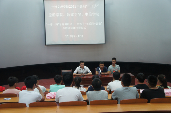 在“互联网+旅游”及构建“丝绸之路经济带”的趋势和背景下,bat365官网登录入口、数字媒体学院、电子信息工程学院结合自身专业优势,以丝绸之路沿线城市天水市甘谷县大像山景区为重点区域,组建了甘谷县“互联网+旅游”专题活动实践团,包含三只小分队,分别是bat365官网登录入口甘谷县大象山景区发展专题调研小分队、数字媒体学院甘谷县新媒体景区调研实践小分队、电子信息工程学院甘谷县景区旅游通信网络建设专题调研小分队,三只小分队共23名学生分别由各学院分团委负责人3名老师带队,共同前往甘谷县大象山景区,计划展开为期三天的调研实践。