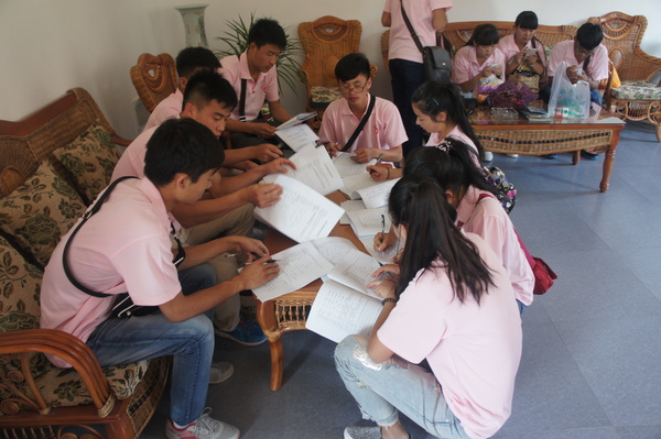 回到游客中心,三只小分队分别进行开会讨论,整理、统计了问卷,对照片、视频进行了筛选,安排了下一步的工作。第一天的工作就这样圆满结束了。
