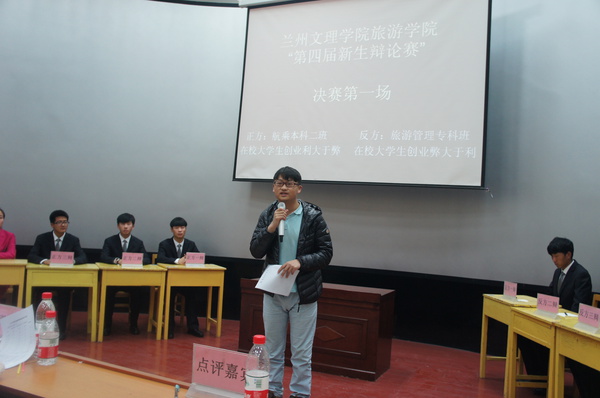 在季军争夺战中,围绕“在校大学生创业利大于弊还是弊大于利”这一辩题,15级航空乘务本科二班和15级旅游管理专科班两支队伍展开论战,最终,旅游管理专科班获胜,夺得本届辩论赛的季军。