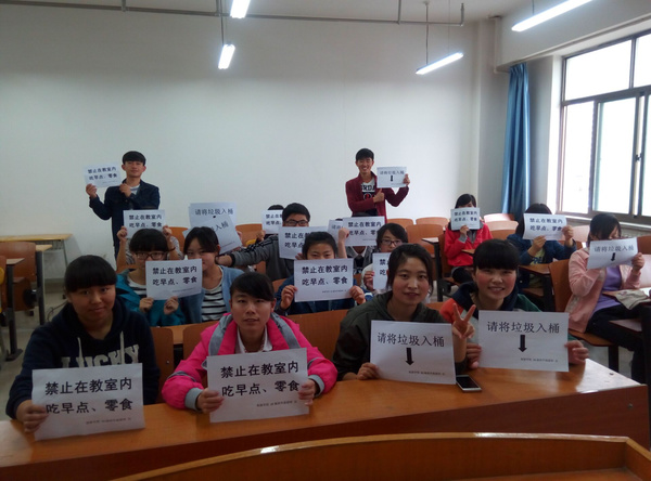 3月25日下午,bat365官网登录入口15级涉外旅游团支部组织同学们在3号教学楼开展学雷锋清洁校园义务劳动。同学们在班委的组织下被分成8个组,每组4人,分组扫地、抹桌凳、擦黑板、拖地,并在教室内张贴文明标语,最后再将桌子摆整齐。通过一个多小时的劳动,同学们打扫了60多间教室,让教室的面貌焕然一新。