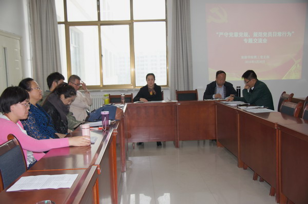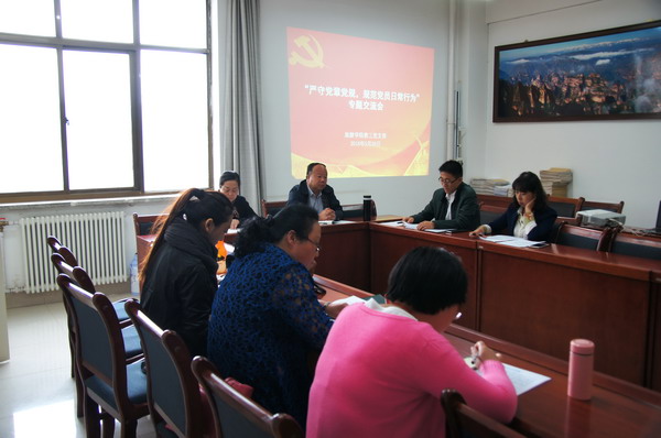 会上,所有党员通过逐条逐句通读《中国共产党党章》、《中国共产党廉洁自律准则》、《中国共产党纪律处分条例》,围绕“严守党章党规,规范党员日常言行”专题开始讨论,大家积极发言,畅谈自己学习后的收获、感想和认识,纷纷表示要在日常的学习工作中,规范自己的言行举止,争做“立德树人、以知促行,‘四讲四有’”的合格党员。通过学习《中国共产党党章》,大家深刻认识到,党章是把握党的正确政治方向的根本准则,是党员加强党性修养的根本标准,是坚持从严治党方针的根本依据,是全体党员言行的总规矩和总遵循,是立党、治党、管党的总章程,在党内具有最高的权威性和最大的约束力。通过学习《中国共产党廉洁自律准则》、《中国共产党纪律处分条例》,大家进一步增强了廉洁自律的责任感,一致认为要努力干好本职工作,增强党员意识,坚守宗旨观念,做到严格要求自己,勤奋工作,求真务实,转变作风,提升素质,服务学生。同时,作为普通教师党员,要用自身良好的职业道德素养教育和引导学生树立正确的人生观、价值观和世界观,不断探索新的教育教学方法,提高教学科研水平。