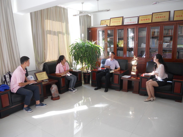 7月18日早晨,bat365官网登录入口“一带一路”文明旅游专题实践团的队员们在张掖市旅游局开始了第二天的实践活动。经过前期接洽和预约,市旅游局袁得平副局长亲切接见了实践团的队员们,市旅游局鲁副局长,以及主管文明旅游培训、旅游投诉的主要负责人分别接受了队员们的采访。实践团队全面了解了张掖市的文明旅游工作与环境,以及文明旅游宣传、监管与服务培训等方面的情况。
