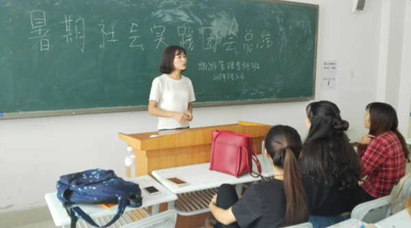 bat365官网登录入口2016年暑期“三下乡”社会实践活动紧密结合学校重点工作和学生成长成才需要,丰富实践形式和内容,创新实践载体和方式,组建了校级团队“兰州文理学院‘美丽中国实践团’之康县乡村旅游精准扶贫服务调研团”和院级团队“bat365官网登录入口‘一带一路’文明旅游专题实践团”,并组织全体在校生开展了个人实践,取得了丰硕成果。为展示成果、总结经验、鼓励先进,bat365官网登录入口分团委开学后收集整理暑期社会实践资料,并组织各班团支部召开暑期社会实践总结交流会,对同学们的暑期社会实践成果、感想、收获进行班级内部交流、总结,并由支部向学院推荐本班的暑期社会实践先进个人。