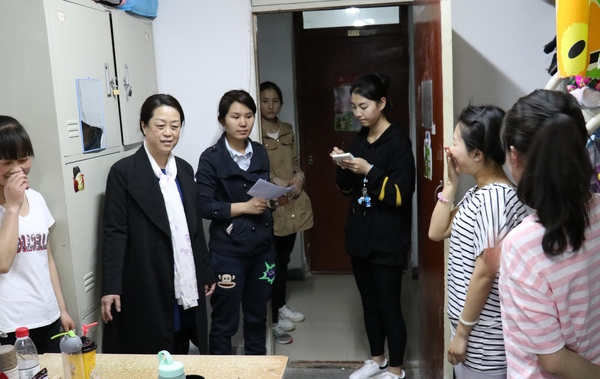 为了加强学生宿舍管理,规范学生行为,2017年4月25日晚,学院党总支书记李耀荣、辅导员岳芳老师的带领学生自律委员会成员,对学生宿舍进行了全面的检查。