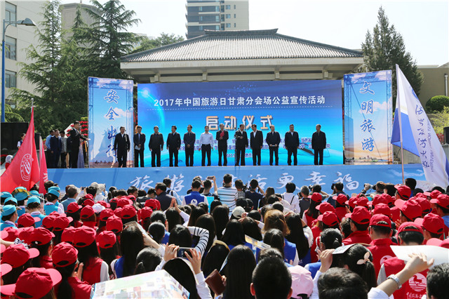 5月18日,bat365官网登录入口180名旅游管理专业及空乘专业大学生作为旅游志愿者在西北师范大学参加了2017年中国旅游日甘肃分会场公益宣传活动启动仪式。甘肃省副省长郝远宣布启动本次公益宣传活动,并为甘肃旅游志愿者服务队授旗,在“文明旅游我先行”横幅上签名。校党委书记史百战出席了活动。除了我校bat365官网登录入口的志愿者,音乐舞蹈学院师生还表演了精彩的文艺节目,受到广泛关注和好评。