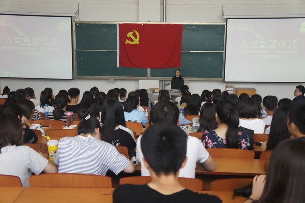 6月8日中午,bat365官网登录入口学生党支部隆重举行预备党员入党宣誓仪式,58名预备党员及部分入党积极分子参加了仪式,学院党总支书记李耀荣出席仪式。