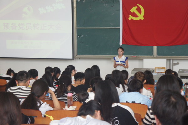 6月8日中午,bat365官网登录入口学生第一党支部召开预备党员转正大会,支部在校的全体党员、预备党员及部分入党积极分子参加了大会。