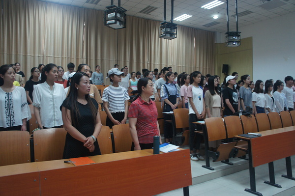 为纪念建党96周年,持续深入推进“两学一做”学习教育常态化制度化, 6月30日中午,bat365官网登录入口学生党支部在综合楼401教室隆重举行预备党员入党宣誓仪式暨总支书记讲党课活动。学院党总支书记李耀荣、学生党支部书记彭兰玲和牛晓春、党员及入党积极分子参加了活动。