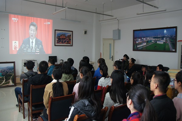 10月18日上午9:00,bat365官网登录入口分团委组织在校学生党员、预备党员、学生干部在bat365官网登录入口办公室收看了党的十九大开幕会。