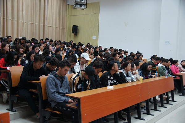 为进一步贯彻十九大精神,提高大学生思想政治素质,坚定理想信念。10月28日上午,社会管理学院张吉军教授在综合楼401导游模拟实训室为bat365官网登录入口16、17级全体同学讲授形势与政策课。该课程由bat365官网登录入口分团委范婷老师主持。