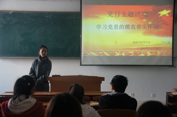根据学校党委组织部《关于整合2017年入党积极分子和发展对象培训工作的通知》和全面从严治党的要求,以及发展党员有关规定,2017年11月16日中午,bat365官网登录入口学生党支部在1—401教室举办了2017年发展对象主题党日活动——学习党员的模范带头作用,2017年发展对象27名同学参加,活动由bat365官网登录入口学生第二党支部书记刘璐主持。