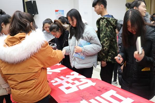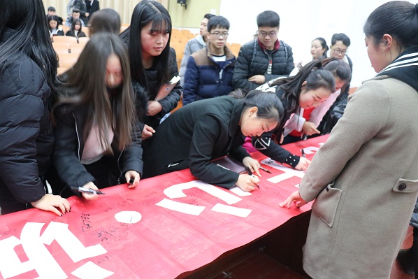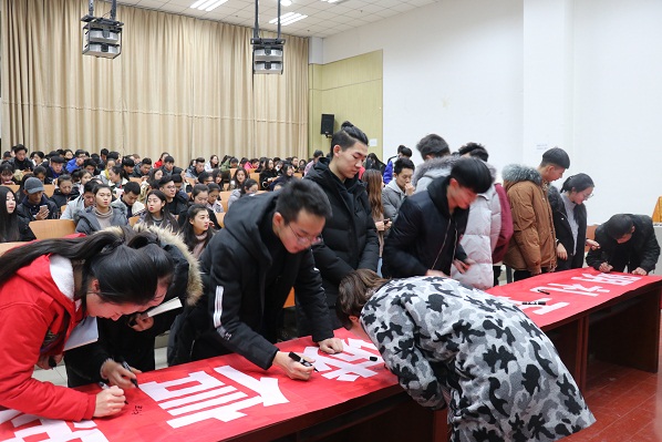 根据学校《关于开展诚信考试教育活动的通知》要求,为提高我院学生诚信意识,养成良好的诚信品质,2017年12月27日,bat365官网登录入口组织开展了诚信考试签名活动。