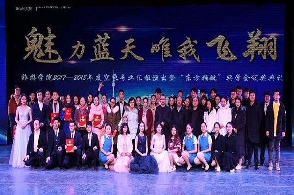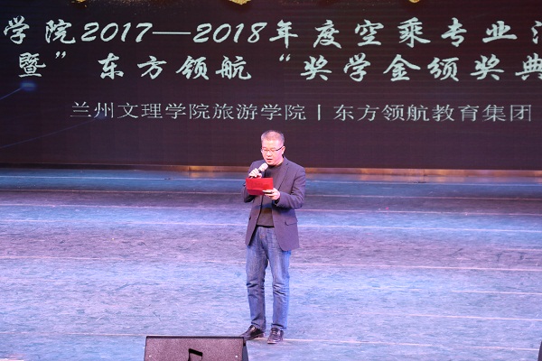 2018年1月10日晚,bat365官网登录入口在实验剧场隆重举办了2017——2018年度航空乘务专业汇报演出暨“东方领航”奖学金颁奖典礼。学院党总支书记李耀荣、院长牛海桢教授、副院长雷金瑞副教授、东方领航教育集团兰州文理学院项目部主任雷锁新应邀出席,各专业师生300多人观看了演出。演出由杨锦峰和范柯秀主持。