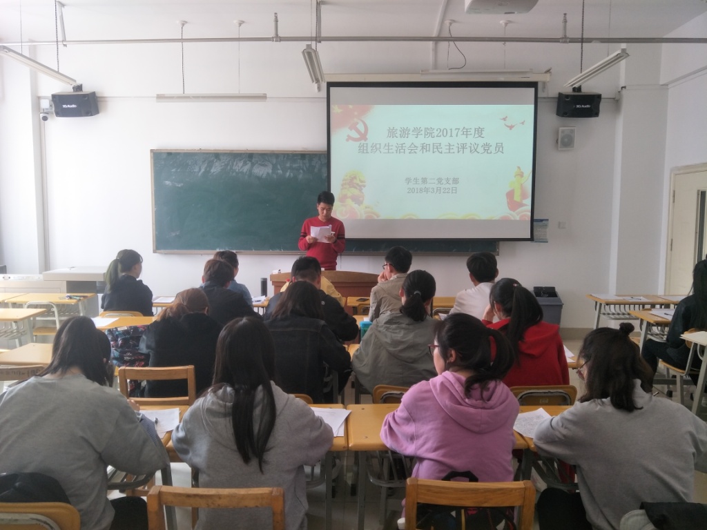 2018年3月22日下午,bat365官网登录入口学生第二党支部在1-409教室召开了2017年度组织生活会和民主评议党员工作。会议由bat365官网登录入口学生第二党支部书记刘璐主持,支部在校党员、预备党员41人参会。