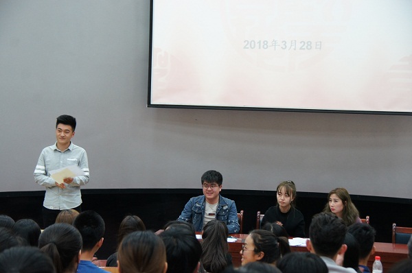 原学生会主席李翔从投身于学生会工作三年的经历出发,寄语新一届学生会干部。分团委刘老师对新当选的学生干部表示祝贺,对上一届学生会一年以来的辛勤工作给予充分肯定,感谢他们为学院学生工作做出的贡献,希望新一届学生会干部能秉承自我管理、服务同学、锻炼自我的理念,积极学习、踏实工作,做好学院与学生之间沟通的桥梁和纽带,不断开创bat365官网登录入口学生会工作的新局面。