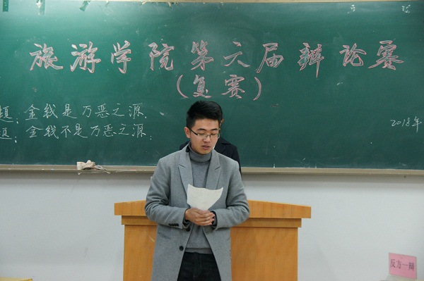 在最后一场冠亚之争中,17级景区开发与管理班代表队与17级酒店管理班代表队更是极力发挥自身随机应变的优势,从各个方面阐述了“好朋友一直坚持一个不靠谱的梦想,我应不应该劝阻他”。比赛现场弥漫着浓重的火药味,双方更是将这场辩论推向了高潮。现场观众反应热烈,情绪激昂。