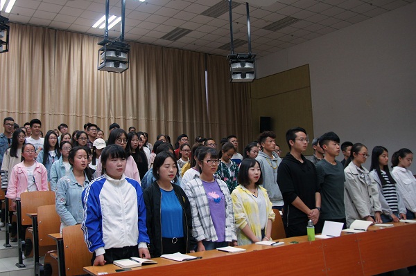 全体起立并奏唱国歌,开班仪式正式开始。常承明老师介绍了党课培训计划和活动安排,强调了培训纪律和要求。李耀荣书记向同学们介绍了此次培训的目的和意义,提出了希望和要求,希望全体学员深入学习党的基本理论,端正入党动机,坚定理想信念,以党员标准严格要求自己,积极向党组织靠拢。