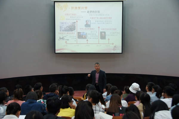 本节课上,牛院长从如何理解中国特色社会主义,中国特色社会主义是实现中国梦的必由之路,中国梦•我的梦等三个方面,带领同学们深入了解了习近平新时代中国特色社会主义和中国梦的伟大构想。