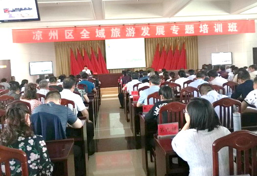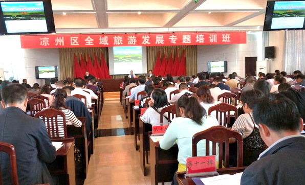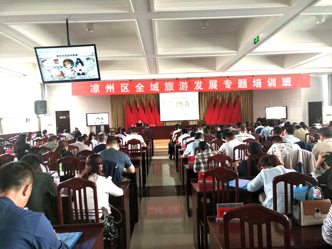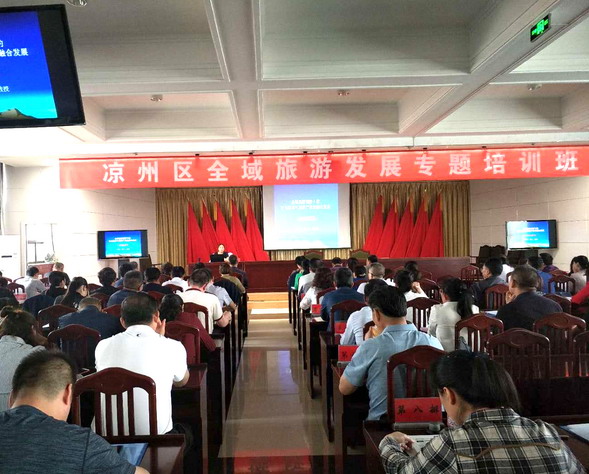 2018年5月14日至5月16日,应凉州区旅游局的邀请,我校bat365官网登录入口组织了以牛海桢教授,陶雪松教授、徐凤教授、常承明、赵爱婷、高雪琴6名老师组成的的培训团队为凉州区全域旅游发展专题培训班开展旅游培训。此次培训班由凉州区委组织部、凉州区旅游局联合举办的,参加此次培训的有凉州区区直有关部门(单位)分管领导,各镇分管领导和旅游骨干,城区各街道、工业园区分管领导、以及区属各A级景区、星级宾馆(饭店)、旅行社、旅游龙头企业、各乡村旅游点主要负责人共170人。