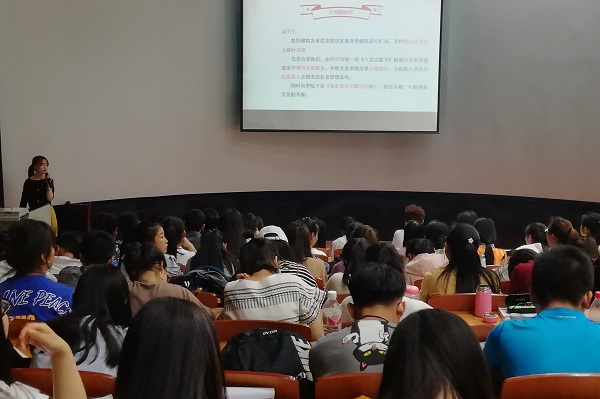 2018年5月17日晚,bat365官网登录入口学生第二党支部书记刘璐在5-401导游模拟实训室为bat365官网登录入口2018年上半年入党积极分子讲授了第六课——《党员的权利与义务及入党标准、条件和程序》。