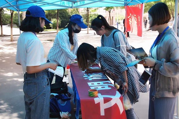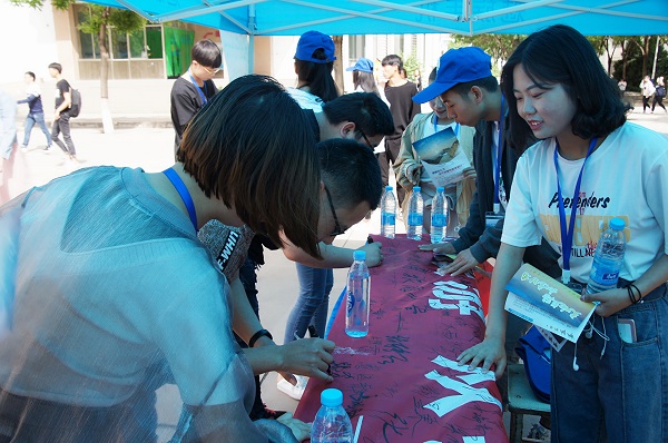 活动当天,旅游学会的同学们在北校区思源楼前小广场张贴海报,拉起横幅,传播关于中国旅游日和文明旅游的相关知识,发放“5•19中国旅游日”宣传单,邀请过往师生在印有“文明旅游,从我做起”标语的横幅上进行“我为文明旅游代言”签名活动,得到了大家的广泛支持和积极参与。广大师生纷纷在横幅上签名,承诺做文明旅游的践行者和传播者。旅游学会成员还广泛搜集中国旅游日和文明旅游相关资料,通过音响设备进行了广播宣讲,向来往的同学们介绍了中国旅游日的由来及历史背景,各种新颖的宣传方式,得到了老师和同学们的一致好评。
