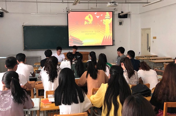 2018年6月11日中午,bat365官网登录入口学生第一、二、三党支部分别在5-401导游模拟实训室、学院会议室、1-402教室召开了预备党员发展大会,学院全体学生党员、预备党员、发展对象及培养联系人参会。会议分别由学生第一党支部副书记李翔、第二党支部书记刘璐、第三党支部书记赵雪主持。