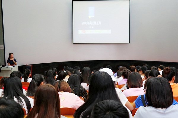 2018年6月20日晚,bat365官网登录入口在5-401导游模拟实训室开展了“形势与政策”集中授课——2018年《中华人民共和国宪法修正案》。本节课由范婷老师主讲,bat365官网登录入口2017级全体学生参加。
