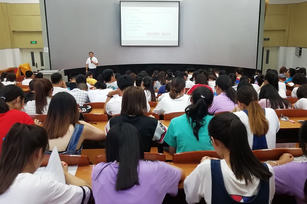 2018年6月26日晚,bat365官网登录入口在5-401导游模拟实训室开展了“形势与政策”集中授课——《习近平新时代中国特色社会主义思想载入宪法》。本节课特邀马克思主义学院副院长马陇平副教授主讲,bat365官网登录入口2016级全体学生参加。