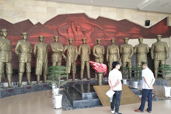 出了场馆,同学们意犹未尽,自发回到纪念雕像前给英雄献花,鞠躬敬礼。在这里,大家深刻感受了革命先烈坚毅不屈的革命精神,深入了解了西路军历史,激发了大学生的爱国主义热情,并且对当地红色旅游资源进行了深度调研。