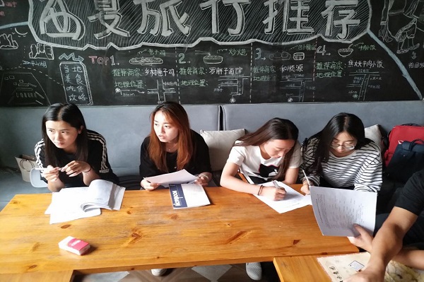2018年8月5日晚,调研团队完成了对张掖市马蹄寺风景名胜区和七彩丹霞景区的调研工作,在入住的青年旅社,调研团队全体成员对当天的调研活动进行了总结交流,会议由刘璐老师主持,调研团队全体成员参加。