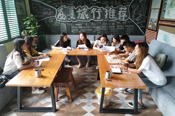 2018年8月5日晚,调研团队完成了对张掖市马蹄寺风景名胜区和七彩丹霞景区的调研工作,在入住的青年旅社,调研团队全体成员对当天的调研活动进行了总结交流,会议由刘璐老师主持,调研团队全体成员参加。