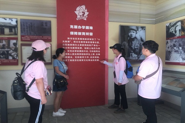 2018年8月22日,bat365官网登录入口“红色旅游推进庆阳革命老区 精准扶贫开发暑期实践团”在华池县旅游局的支持下先后参观了列宁小学、南梁革命纪念馆、南梁军民大生产纪念馆、中国人民抗日军政大学第七分校等红色景点,深入走访庆阳红色旅游重点建设项目,着重调研了南梁红色旅游项目的总体规划、设计细节、发展现状、现存问题以及未来的发展目标。