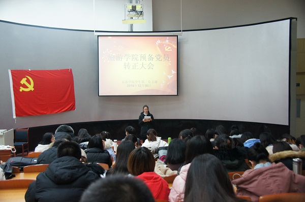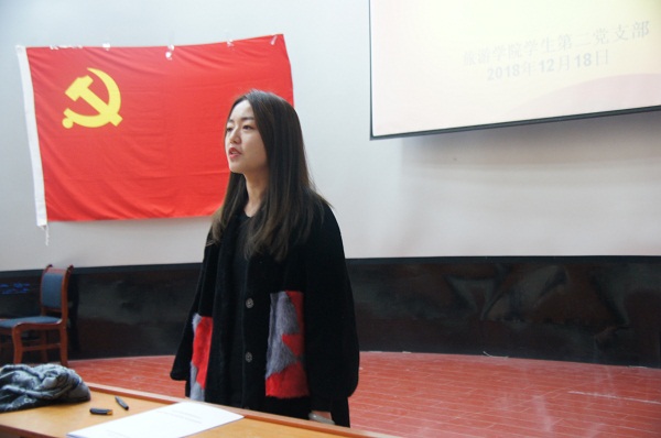 为加强党的组织体系建设,推动全面以严治党向基层延伸,全面提升党支部组织能力,我院于2018年12月18日中午12:00在5-401导游模拟实训室召开了学生第二党支部学习《中国共产党支部工作条例(试行)》大会,学生第二党支部书记刘璐为学生第二党支部成员做了细致讲解。