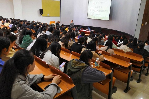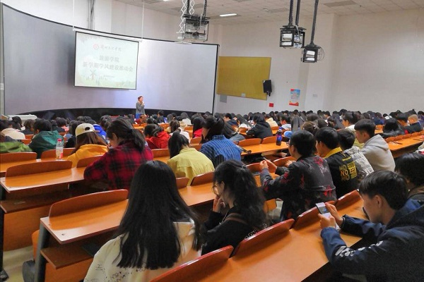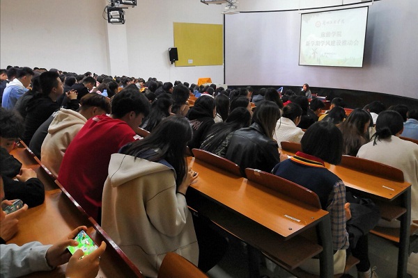 首先,由马婷婷老师先召开了18级全体学生的学风建设推动会。马老师强调,新学期,新开始,形成一个良好的学风是大学生的学习动力。不管假期有多丰富,同学们要尽快适应新学期的开始。新学期,新规划,大一的时光转瞬即逝,我们应该自觉激发学习热情,强化成才意识,刻苦学习,努力拼搏,促进良好学风的形成。马老师提出,新学期要树立明确的奋斗目标和正确的学习态度,真正从思想上认识到优良学风对个人成长的促进。随后,由刘璐老师为17级全体学生召开新学期学风建设推动会。通过对良好学风的讲解,刘老师对同学们提出三点期望,她希望同学们能够对考研、考工作持努力态度,在宿舍遵纪守规,面对未来更应该积极进取,一个好的学风,一个好的开始。最后,由雷金瑞副院长为15级和16级全体学生召开新学期学风建设推动会。雷院长从专升本问题、毕业论文问题、就业问题、安全问题四个方面为大家提出新学期的任务,将号召具体到切身行动中去,充分调动大家的积极性,从而为新学期良好的学风建设以及今年学校的合格本科评估工作营造一个良好的氛围,同时也为学弟学妹做一个良好的表率。