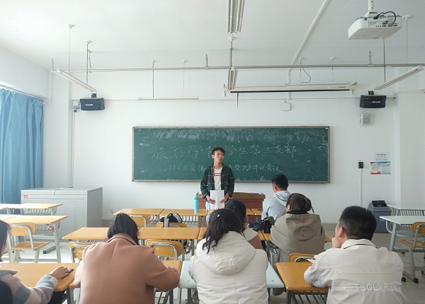 2019年3月21日,bat365官网登录入口学生第三党支部在1-409教室开展组织生活会和2018年度民主评议党员大会,支部党员、预备党员参加会议,支部书记赵雪主持会议。
